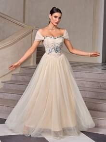 Off-Shoulder Lace Ruffle Maxi Dress – Women’s Elegant Flowy Evening Dress | ARINZE Fashion - S